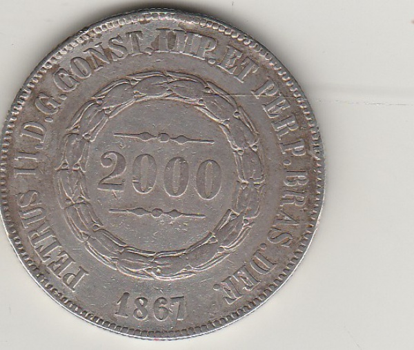 • 2000 REIS DE PRATA DE 1867 MUITO RARA