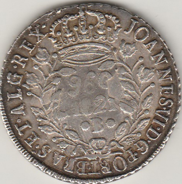 • P478D-VARIANTE (JAE) 960 REIS DE 1820R MUITO RARA COM A SIGLA DO GRAVADOR DENTRO DO ZERO
