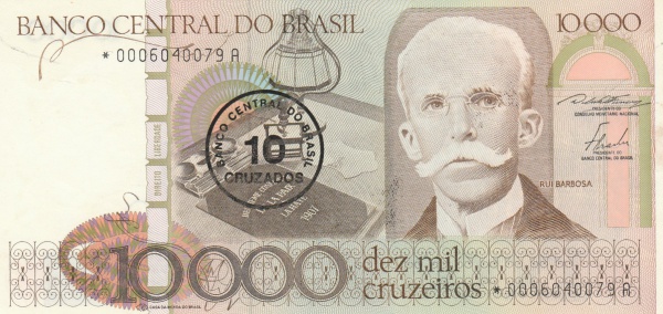 • CEDULA DE REPOSIÇÃO - C 177A 10 MIL  CRUZEIROS SERIE 0006-FE , COM PEQUENA MANCHA