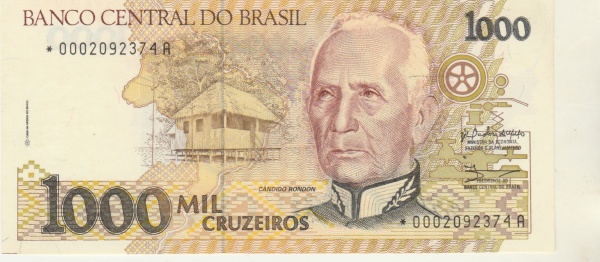 • CEDULA DE REPOSIÇÃO ,C 163A ,1000 CRUZEIROS, SERIE 0004