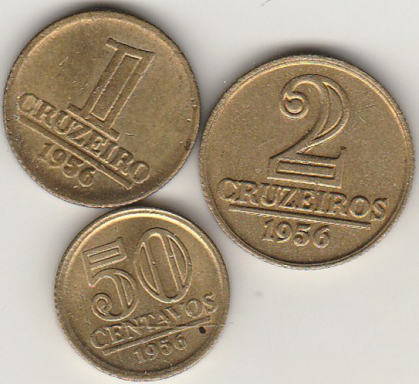 • 50, 1 E 2 CRUZEIROS  DE 1956 FLOR DE CUNHO